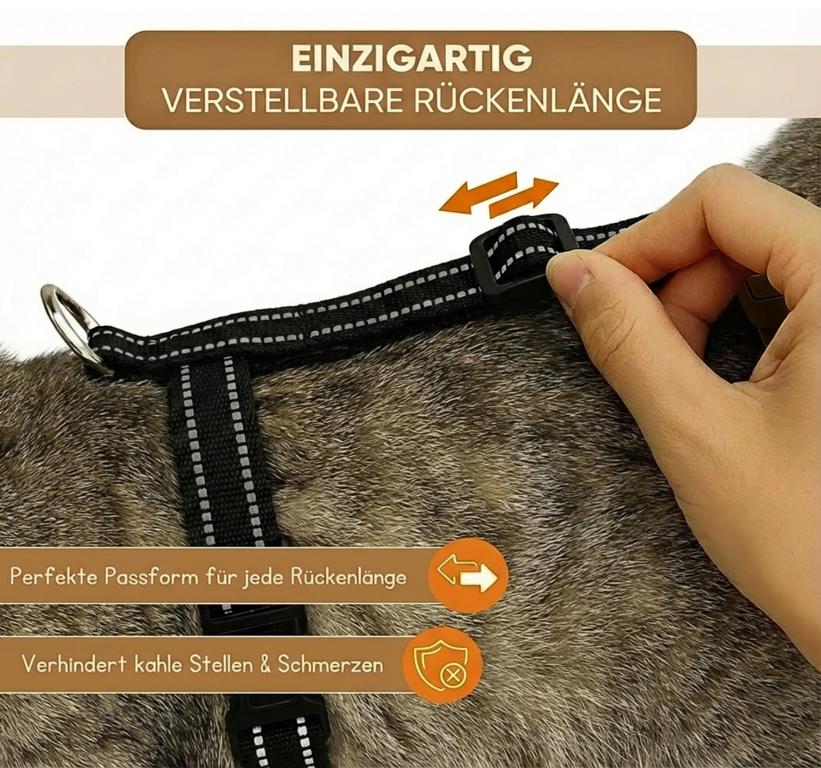 Das Geschirr liegt körpernah an, ohne einzuengen, und reduziert das Risiko des Herausschlüpfens deutlich. Die weichen Materialien sorgen dafür, dass sich deine Katze auch bei längeren Ausflügen wohlfühlt.