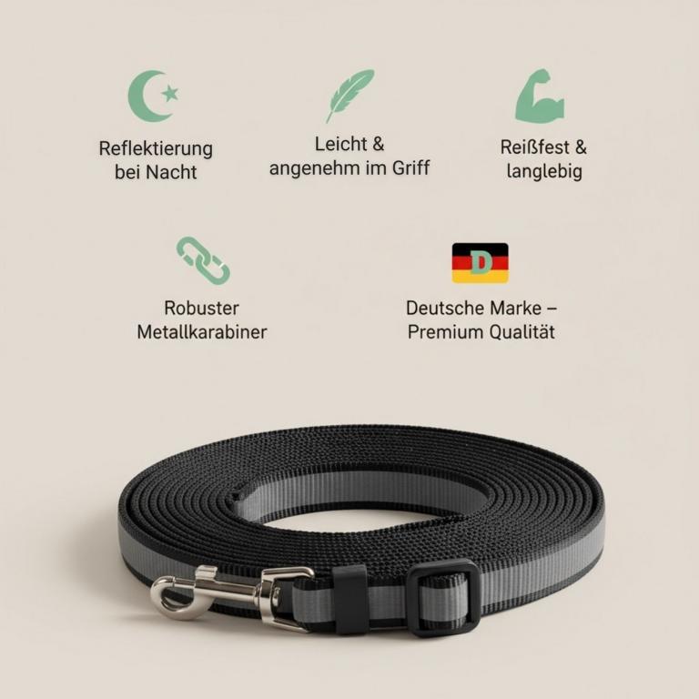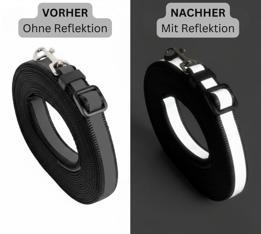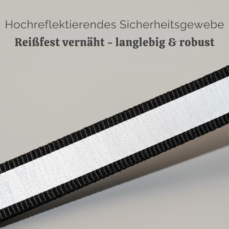 Die Leine wird schon von weitem von z.B. Radfahrern, Autos, Bussen etc. gesehen.