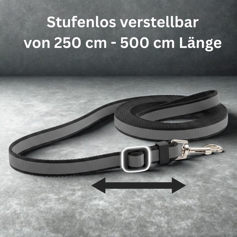 - Gute Verstellmöglichkeit: Sie können diese Leine von 2,5 Meter bis zu 5 Meter verstellen und das super einfach und bequem. Sie brauchen lediglich den integrierten Schieber nach rechts zu schieben und verlängern somit STUFENLOS die Leine. Das bedeutet, dass Sie jegliche für Sie gewünschte Länge bis 5 Meter einstellen können für z.B. einen Balkon, auf der Wiese oder im Garten.