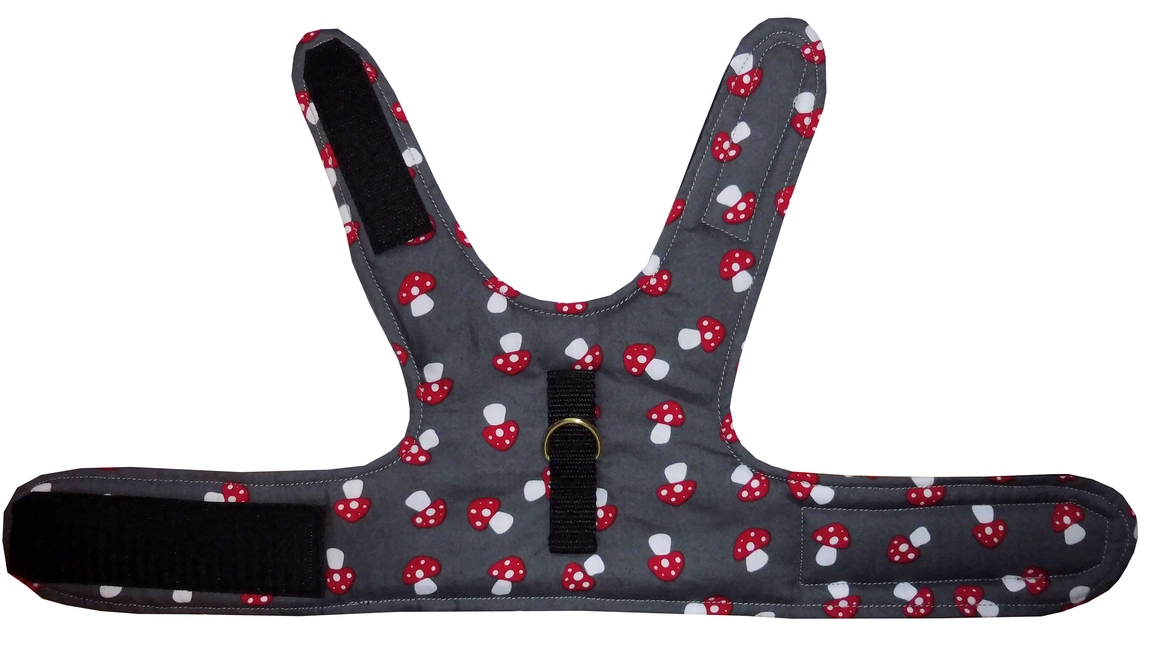 Kitty Jacket mit süßen Fliegenpilzen! Super soft, super komfortabel und mit der hervorragenden Passform für kleine und große Katzen. Genießen Sie die jetzige Jahreszeit mit Ihrer Katze im Freien! Sei es auf dem Balkon, in Ihrem Garten, im Park oder auf einer Blumenwiese. Der Freigang Ihrer Katze wird mit diesem exzellenten Geschirr zu einer Wohltat für Mensch und Tier.